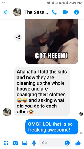 Bless Bella’s heart for sure… she was worried about the house being clean and then rallied the troops. I also don’t think in the end she would have lied for me. However, as soon as she knew that it was a prank she and Anna plotted to not tell the other kids until I got home. She got them cleaning and even changed their clothes! I was dying getting these messages!