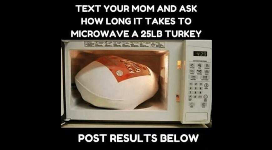 Y’all… I can’t even!  I’m sure you’ve seen the “turkey in the microwave” prank that so many kids have been pulling on their parents. If you haven’t, let me give you a brief overview of it… Kid who lives out of the house texts mom or dad saying that they are going to be going to a “Friendsgiving” where they have been tasked to bring … Continue reading When Your Kid Plays a Prank: How to Microwave a Turkey